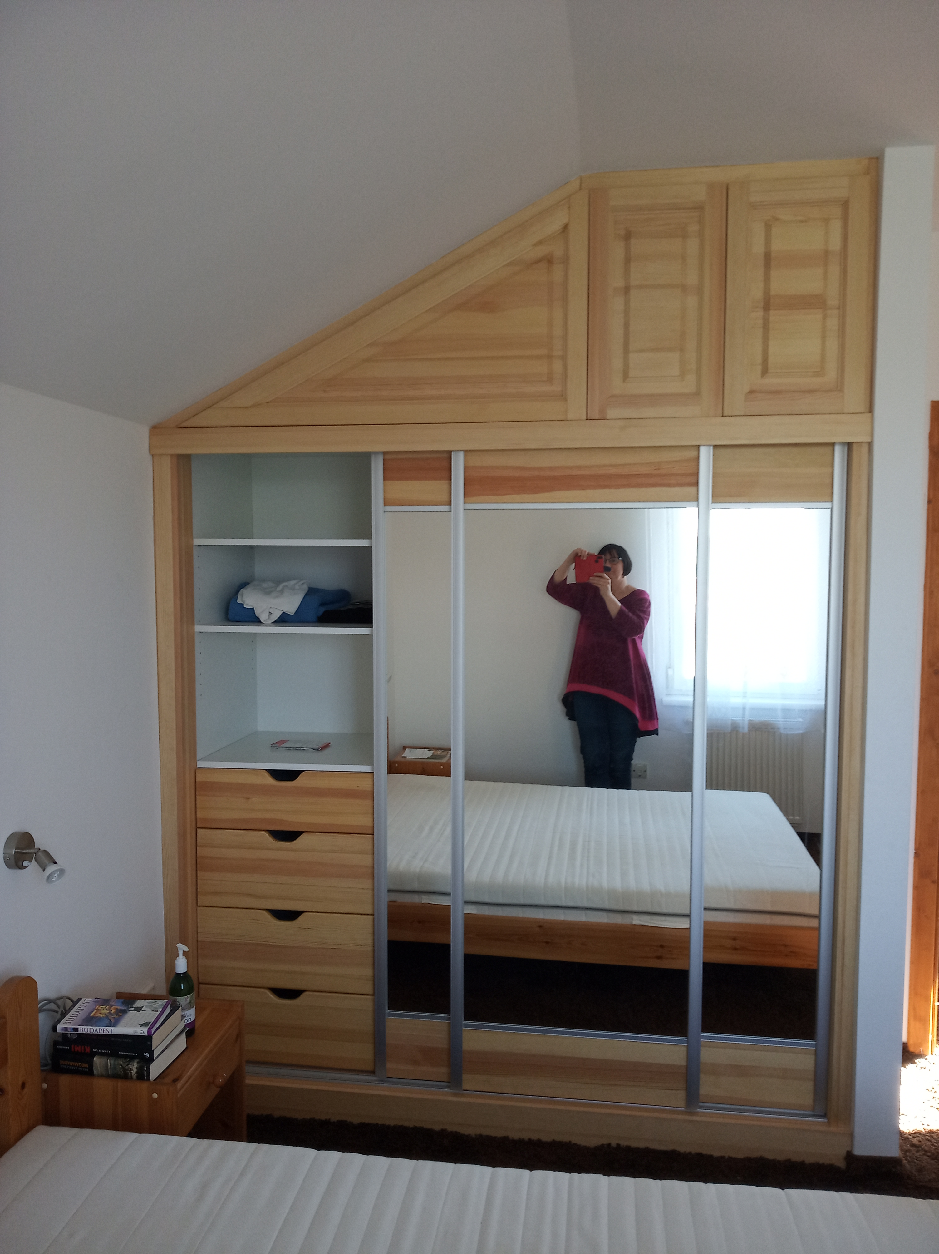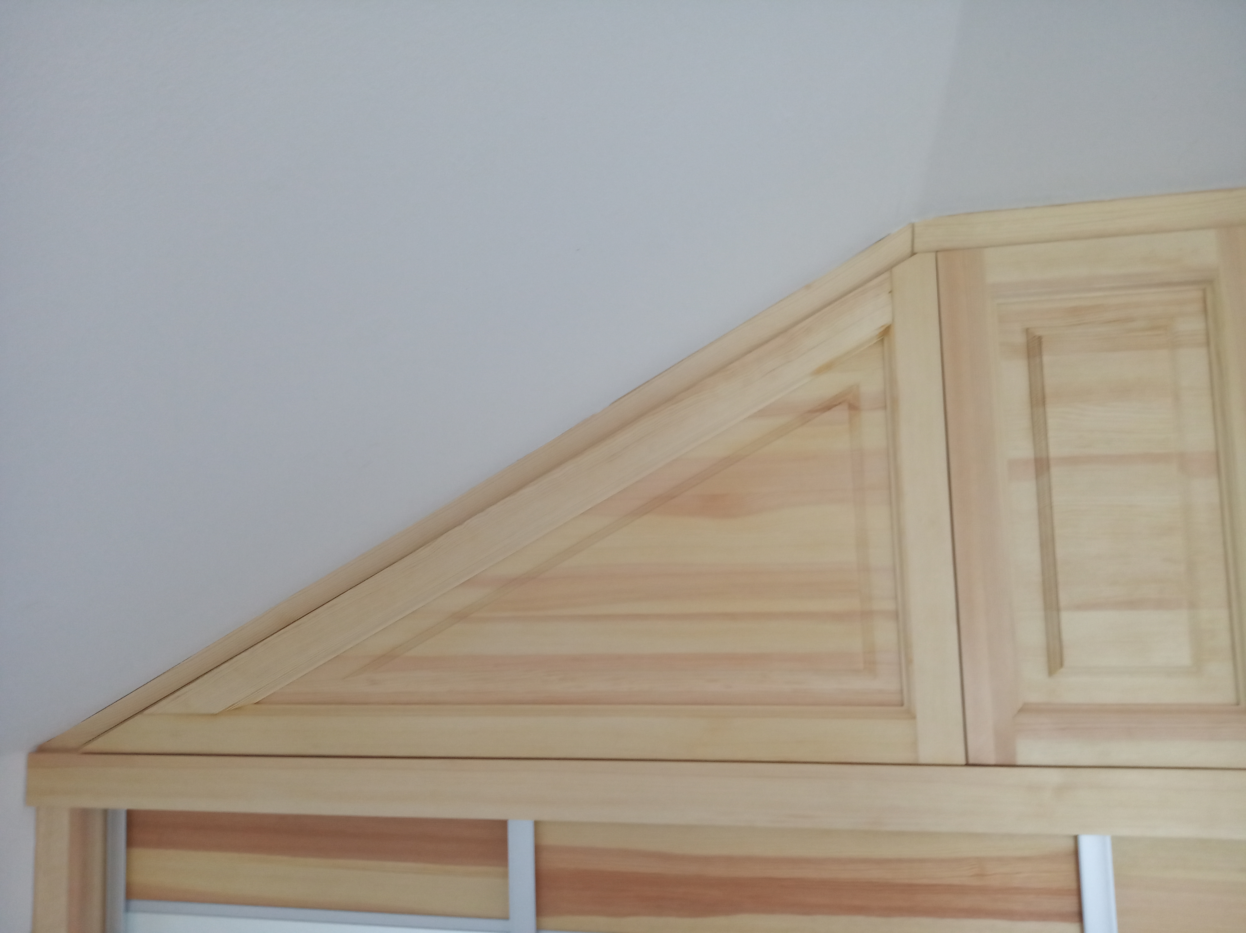 A szekrények technikai különlegessége a háromszög alakú kontraprofilos ajtó 🙂