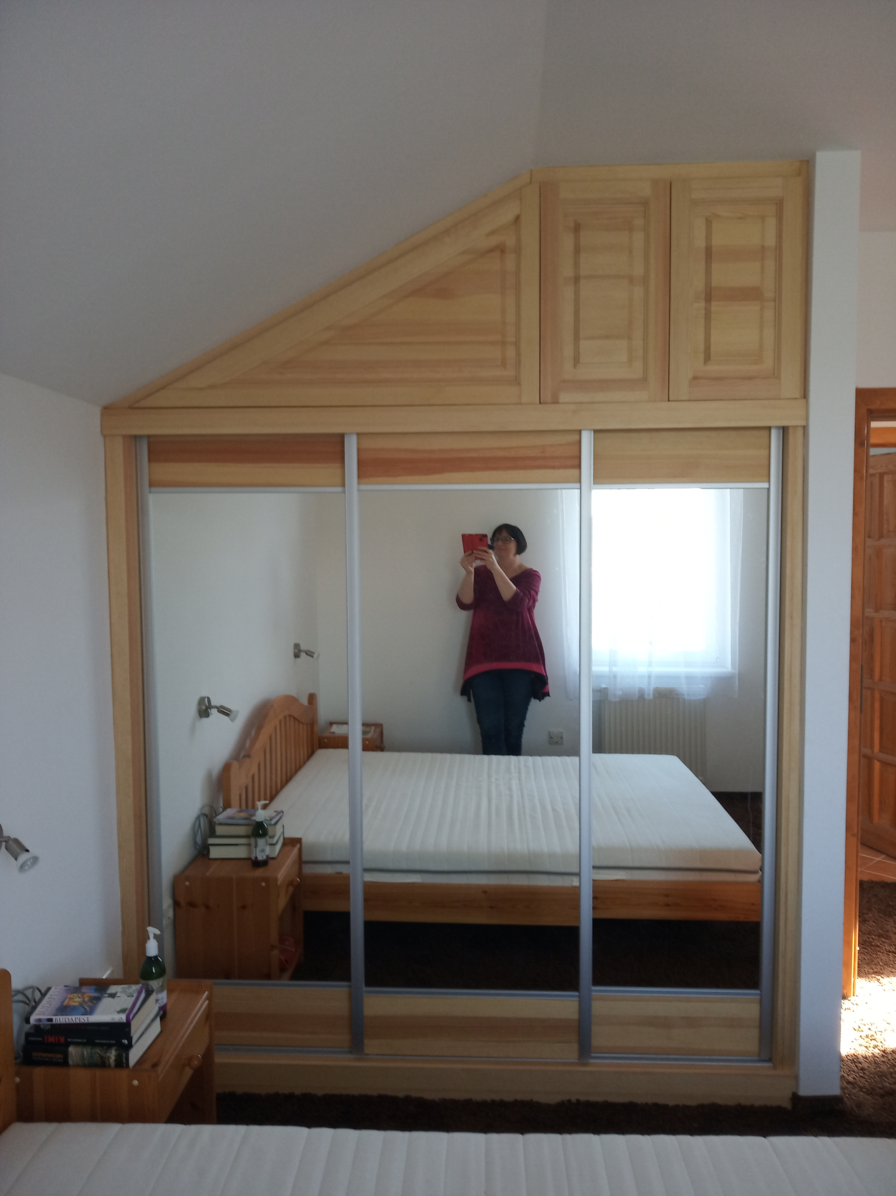 Egy családi ház emeletének négy szobájába készült négy tolóajtós szekrény.